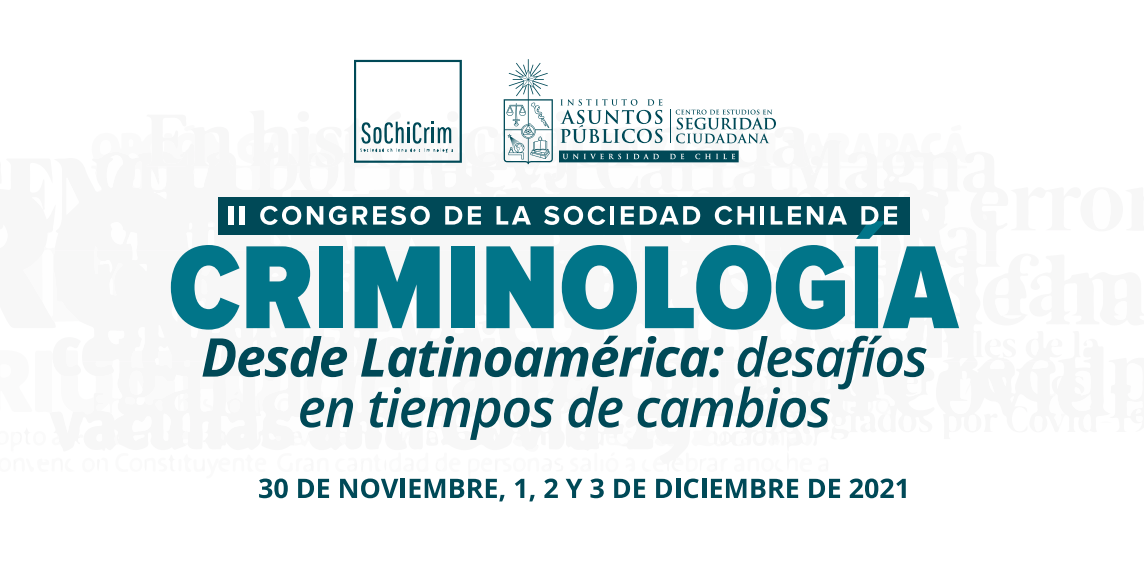 Desde el martes 30 de noviembre al viernes 3 de diciembre de 2021 se desarrollará el II Congreso Internacional de la Sociedad Chilena de Criminología (Sochicrim), actividad de índole académico que en esta oportunidad es apoyada y patrocinada por el Centro de Estudios en Seguridad Ciudadana (CESC) del Instituto de Asuntos Públicos de la Universidad de Chile.