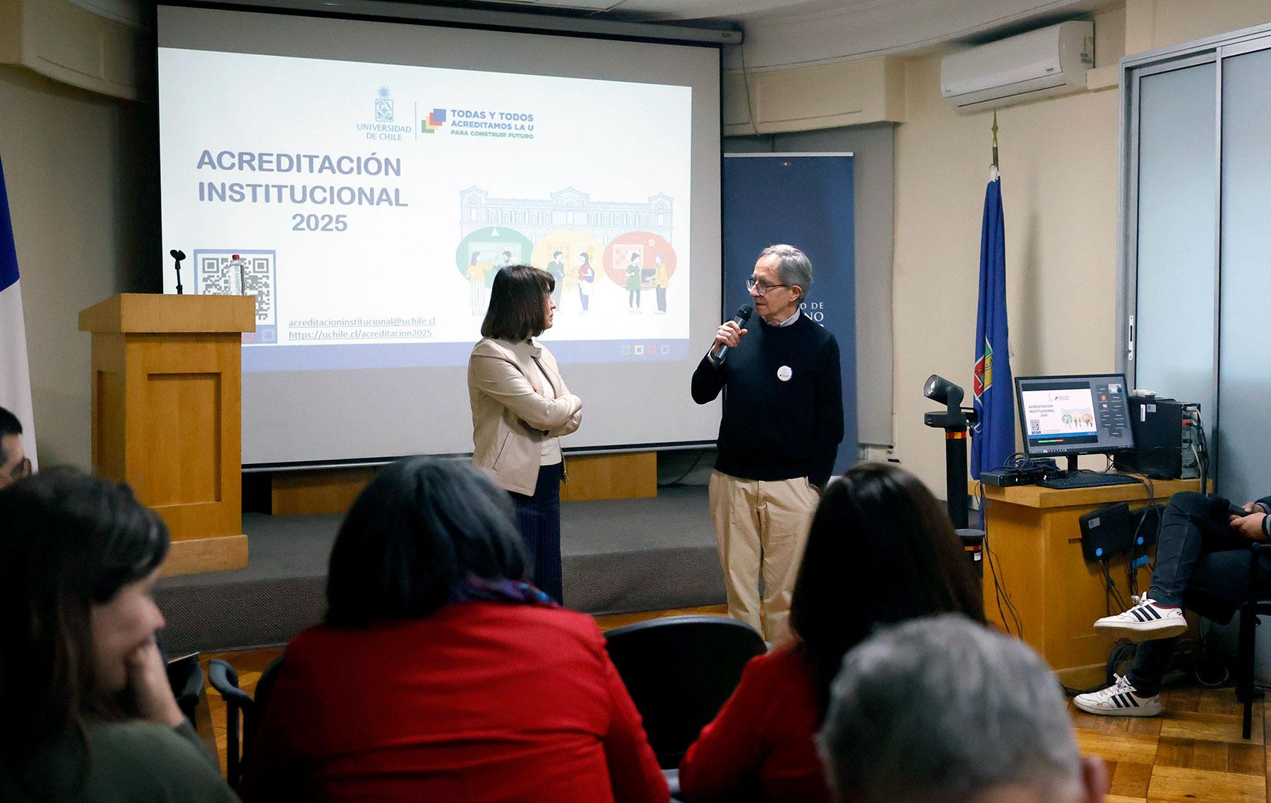 Con asistencia abierta de académicas/os, estudiantes, funcionarias/os y directivas/os se desarrolló el 23 de julio la visita a la Facultad de Gobierno, con el fin de dar a conocer los principales resultados del informe de autoevaluación institucional tanto para la Universidad como para la facultad.