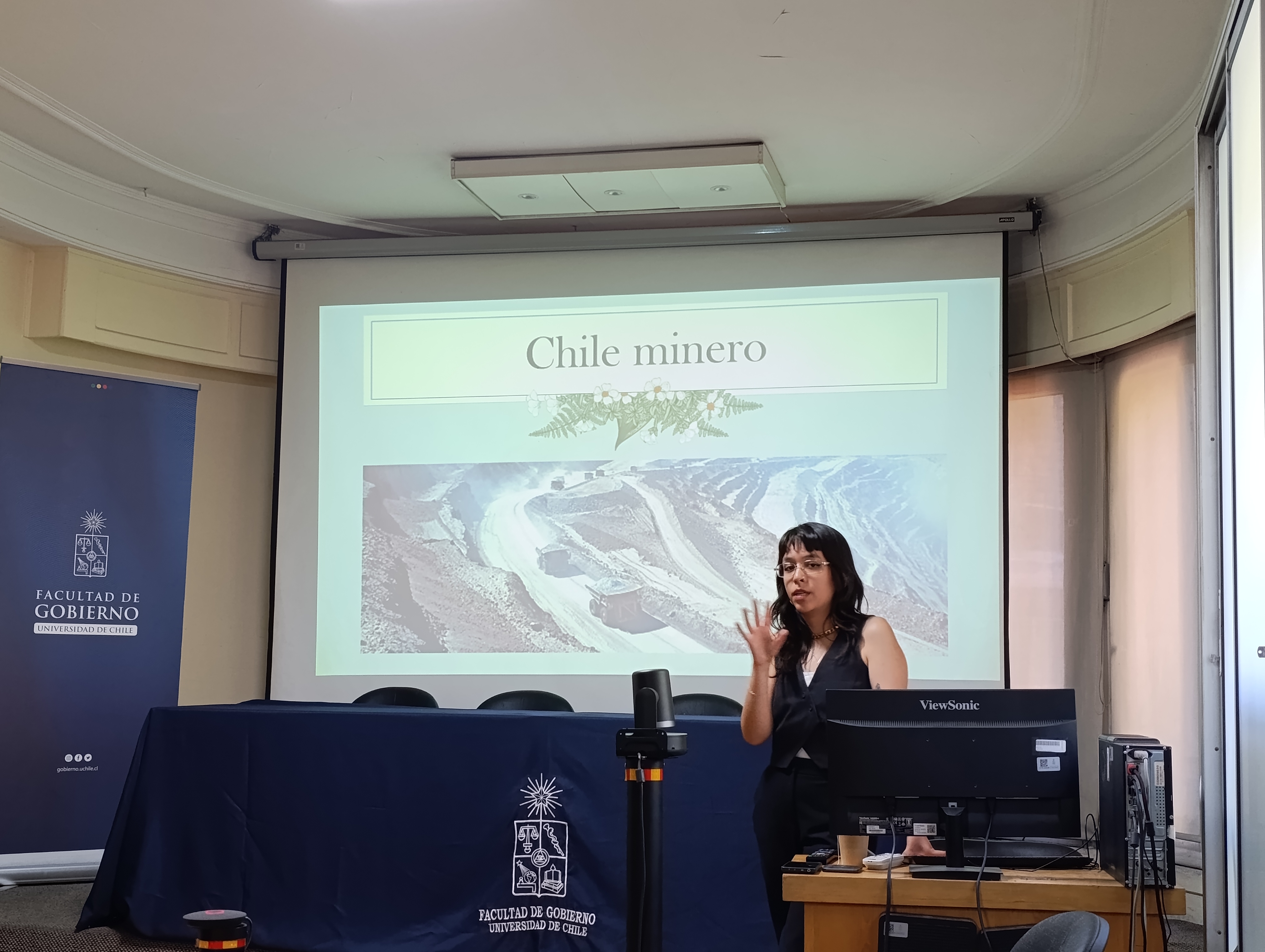 La primera presentación estuvo a cargo de Gabriela Mardones Cortés, cientista política y estudiante del Magíster en Ciencia Política, quien expuso su investigación sobre la extracción de litio en Chile. Su trabajo busca comprender cómo esta actividad puede considerarse una forma de extractivismo, poniendo especial atención en la planificación y gobernanza asociadas a este mineral.