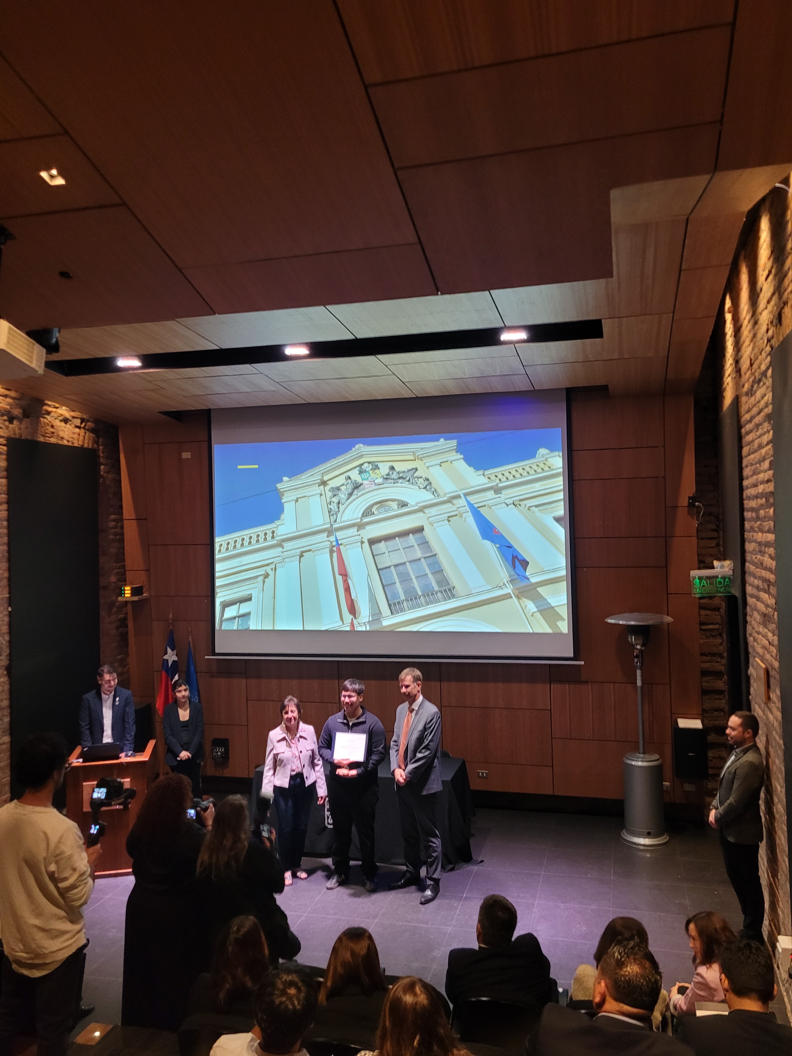 El estudiante de Ciencia Política de la Facultad de Gobierno de la Universidad de Chile, Eduardo Valdés Escobar, fue uno de los diez seleccionados para recibir la Beca Santander de Movilidad Internacional de Pregrado 2025, en una ceremonia realizada el 20 de octubre de 2025 en el Auditorio de la Facultad de Arquitectura y Urbanismo de la Universidad de Chile.