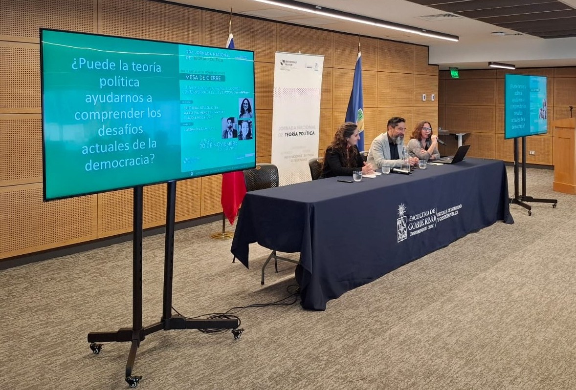 Los días 19 y 20 de noviembre se desarrolló la Segunda Jornada Nacional de Teoría Política, organizada conjuntamente por la Escuela de Gobierno y Gestión Pública de la Facultad de Gobierno de la Universidad de Chile y la Escuela de Gobierno y Administración Pública de la Universidad Mayor. La actividad tuvo por objetivo crear un espacio de encuentro académico para la reflexión, discusión y análisis en torno a los principales debates que atraviesan esta subdisciplina.
