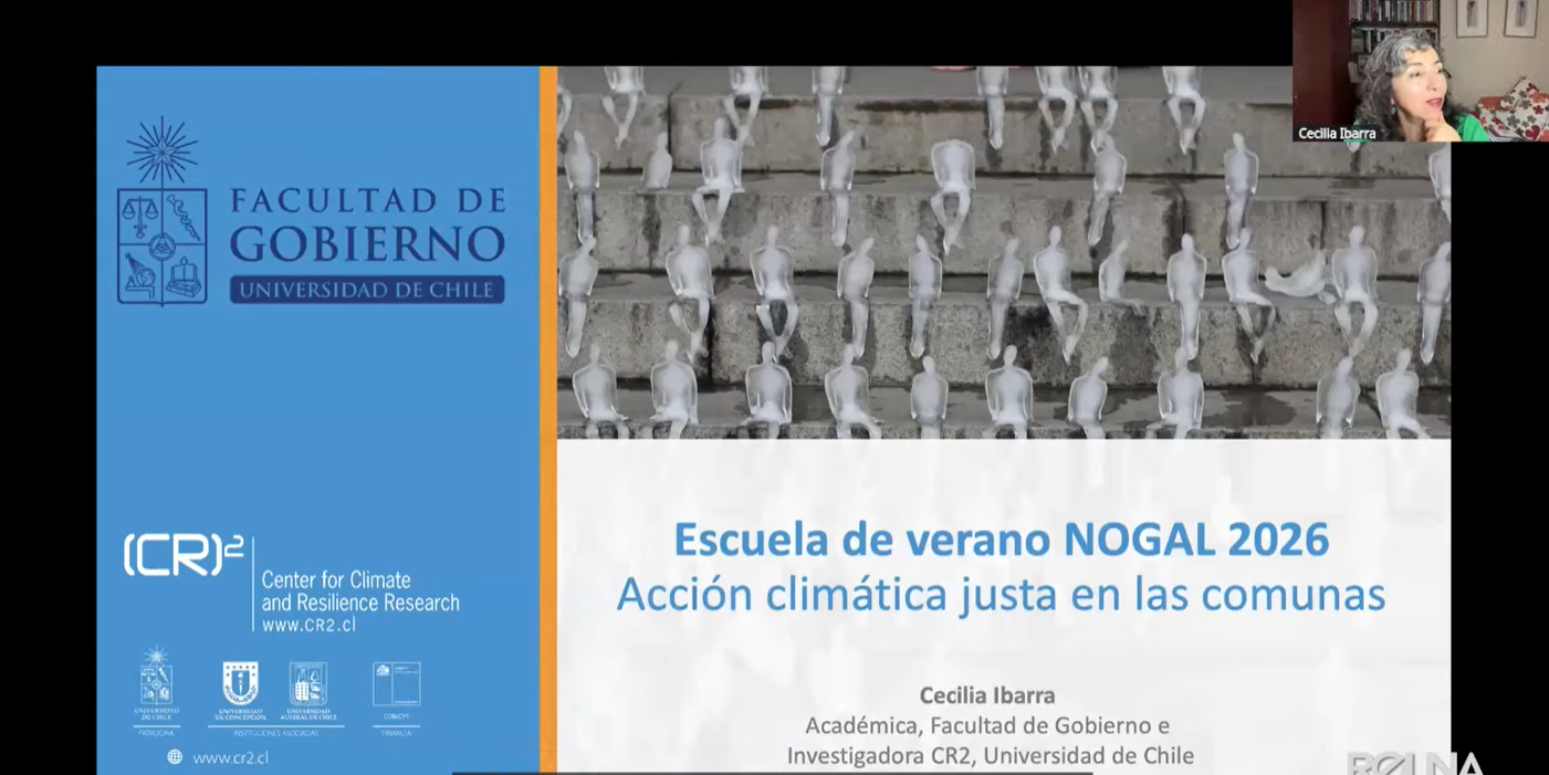 La primera sesión estuvo dedicada a la temática “Planes de Acción Climática Comunal” y fue liderada por la Facultad de Gobierno a través de la profesora Cecilia Ibarra. En una conferencia de aproximadamente una hora, la académica presentó su propuesta de “acción climática justa” en el contexto de los planes de acción climática comunal. Basada en el enfoque de la justicia ambiental, la profesora Ibarra planteó la acción climática justa como una noción orientadora para las políticas municipales, así como un estándar que la ciudadanía debiera exigir y resguardar.